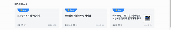 .best-post-wrapper에서& > *:nth-child(2), & > *:nth-child(3)로 2, 3번 째 요소를 대상으로 화면에 보이지 않게 해줌
